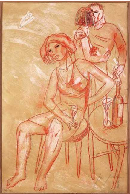 Impreso por Kouji Ochiai y Raúl Fernández. Madrid. Firmado a lápiz J. de Juan, lápiz l.r. De la Serie "Los Radiescuchas". Aguafuerte y aguatinta. 3 planchas y 3 colores. Edición: 75 + 10 pruebas de artista + 3. Cat.29