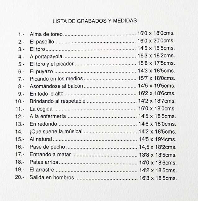 Title: Listado de Grabados de la Carpeta