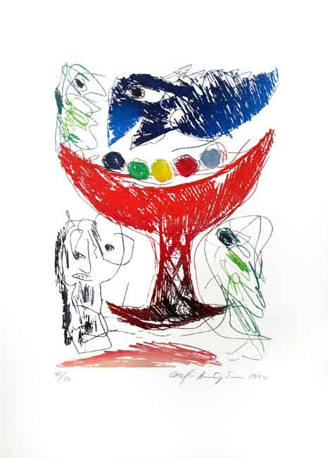 Este aguafuerte pertenece al Libro Le plus Beau Cadea, (El Regalo Mas Bello. 1995). Poesías de niños invidentes, ilustradas con 7 grabados originales de Alechinsky, Chillida, Miotte, Miro, Pedersen, Sugaï y Tapiès, cada una firmada al lápiz por el artista. Libro editado para la asociación artística y caritativa de Parly (Yonne).